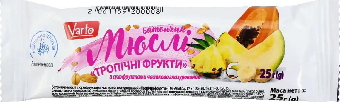 Батончик-мюслі Varto з тропічними фруктами 25 г