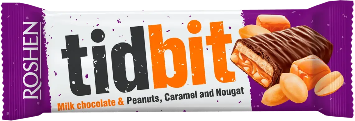 Шоколадний батончик TidBit з нугою, карамеллю і арахісом від торгової марки Roshen - це оригінальне ласощі, яке не тільки дуже смачне, але і неймовірно поживна. Це робить його відмінним варіантом для ситного перекусу. Незважаючи на невеликий розмір, цей б