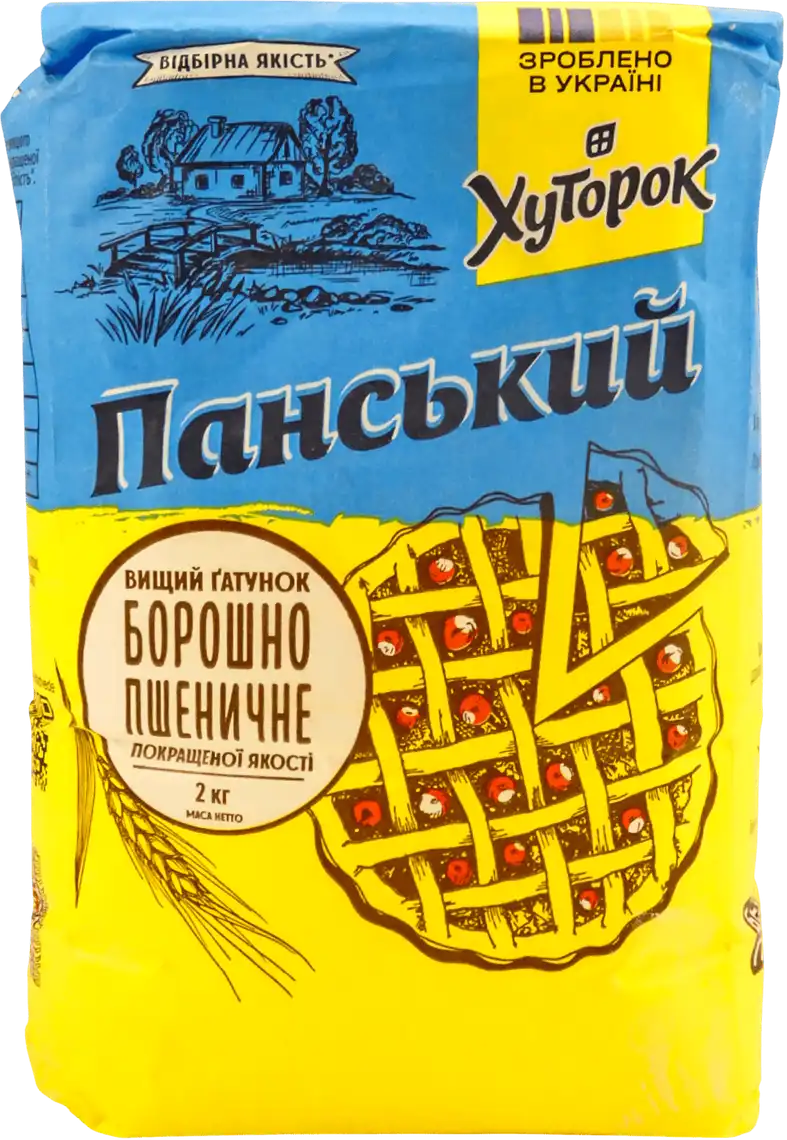 Борошно пшеничне Хуторок Панський вищого ґатунку — це якісний продукт, створений із ретельно відібраного пшеничного зерна, який забезпечує чудовий результат у будь-яких кулінарних ідеях. Завдяки високому рівню очищення, це борошно має тонку текстуру, білосніжний колір і нейтральний смак, що робить його універсальним вибором для випічки та приготування інших страв. Ідеально підходить для випікання пишних пирогів, хліба, здоби, тортів чи печива, а також для створення соусів, тіста для пельменів чи млинців. Хуторок Панський вищого ґатунку гарантує легкість у роботі з тістом і чудову якість готової продукції. Це вибір для тих, хто цінує натуральність, зручність у використанні та бездоганний результат на кухні.