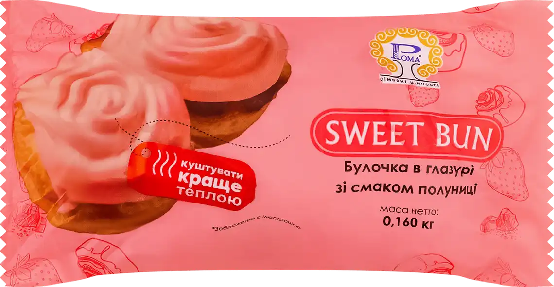Булочка Рома в глазурі зі смаком полуниці 160 г
