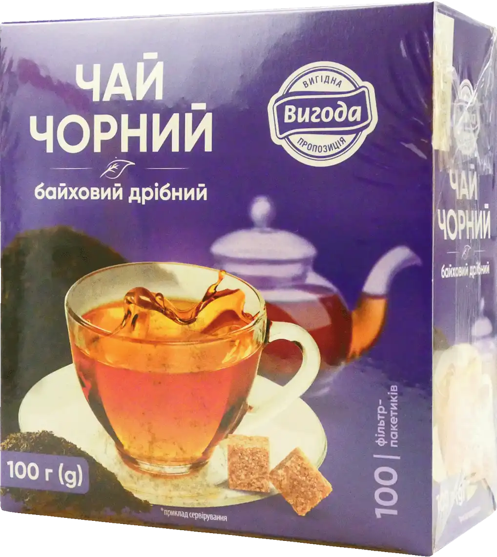 Чай Вигода чорний байховий дрібний 100 пакетов по 1 г