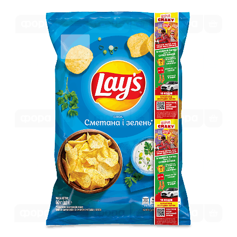 Чипси Lay's картопляні зі смаком сметани та зелені