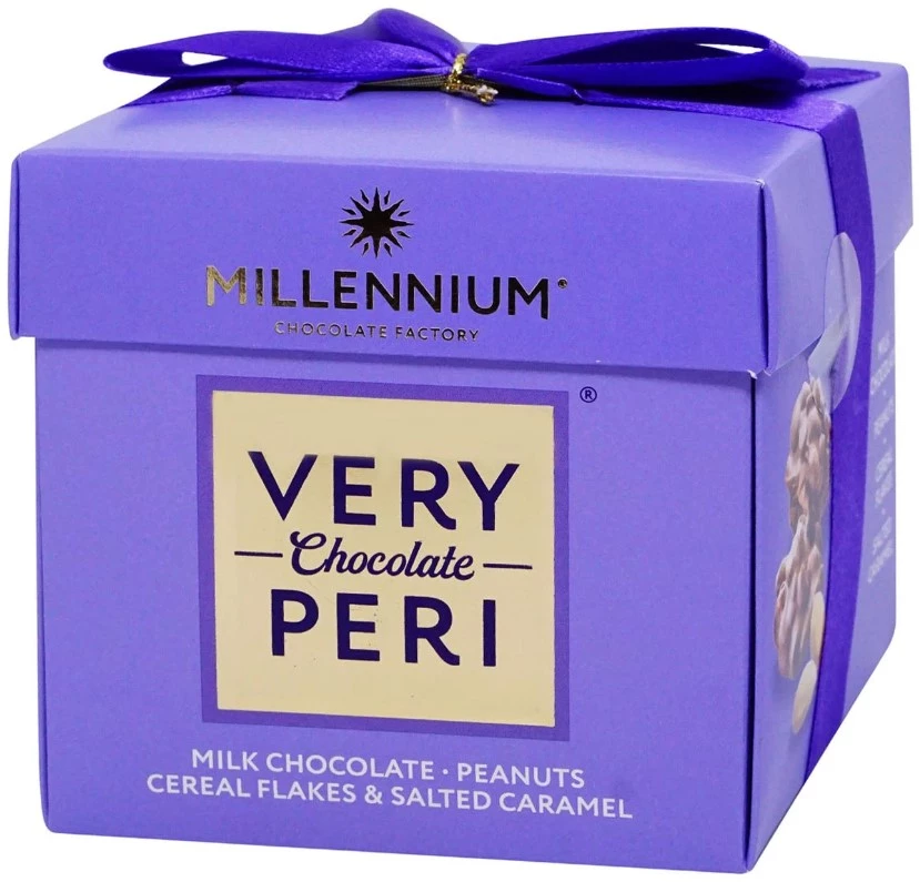 Цукерки Millennium Very Peri шоколадні з арахісом, родзинками, злаковими пластівцями та солоною карамеллю 140г