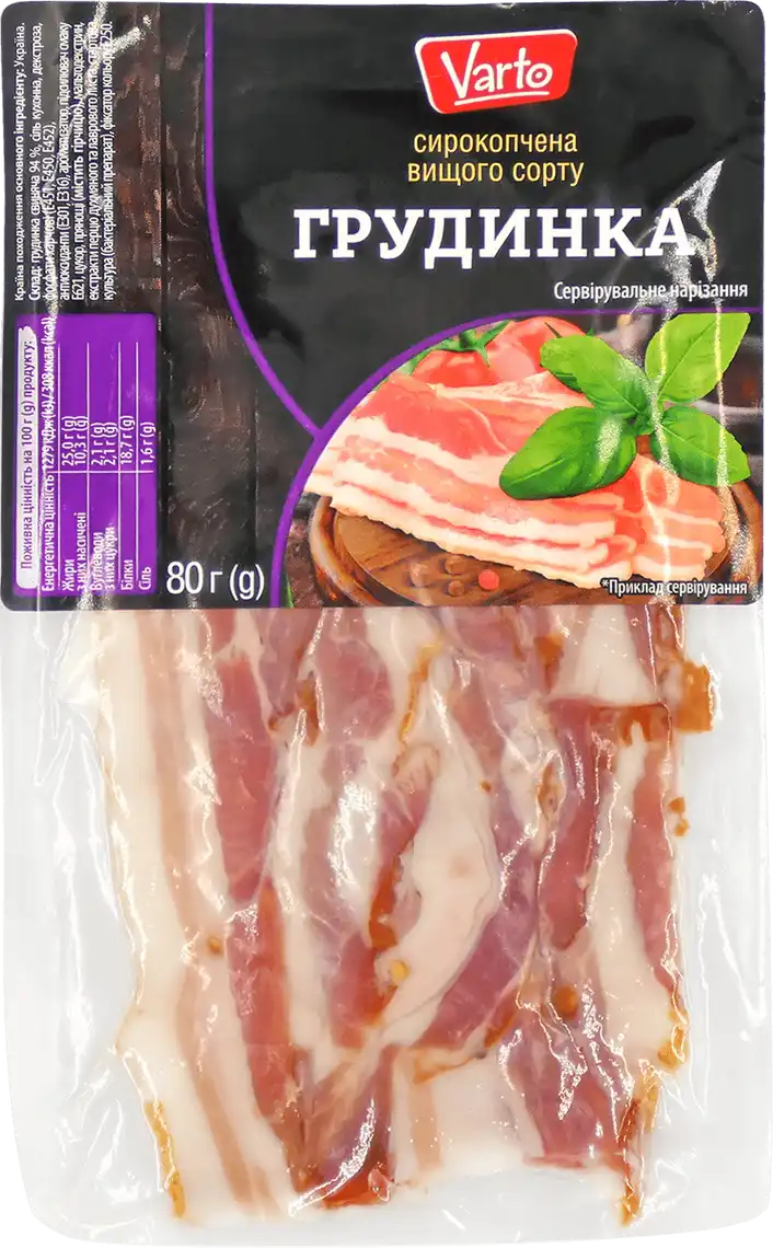 Грудинка Varto сирокопчена нарізка вищий гатунок 80 г