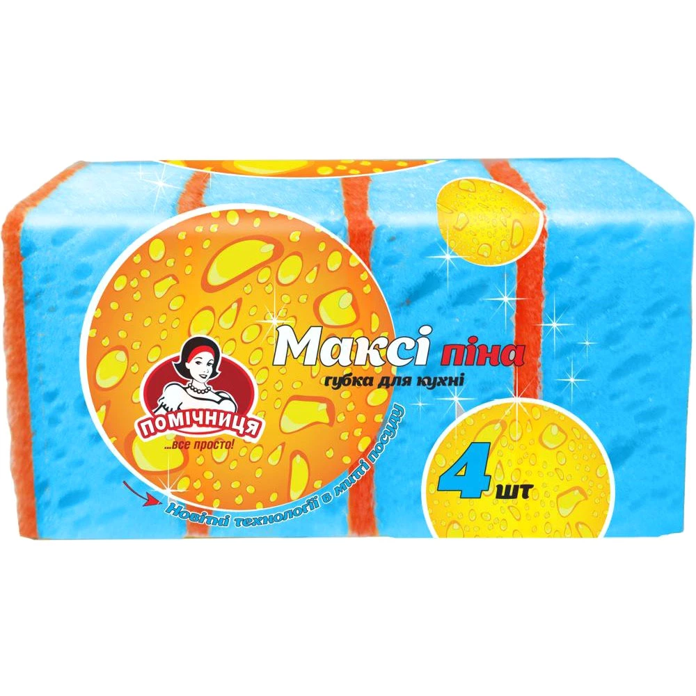 Губка для кухні Помічниця Максі піна, 4 шт.