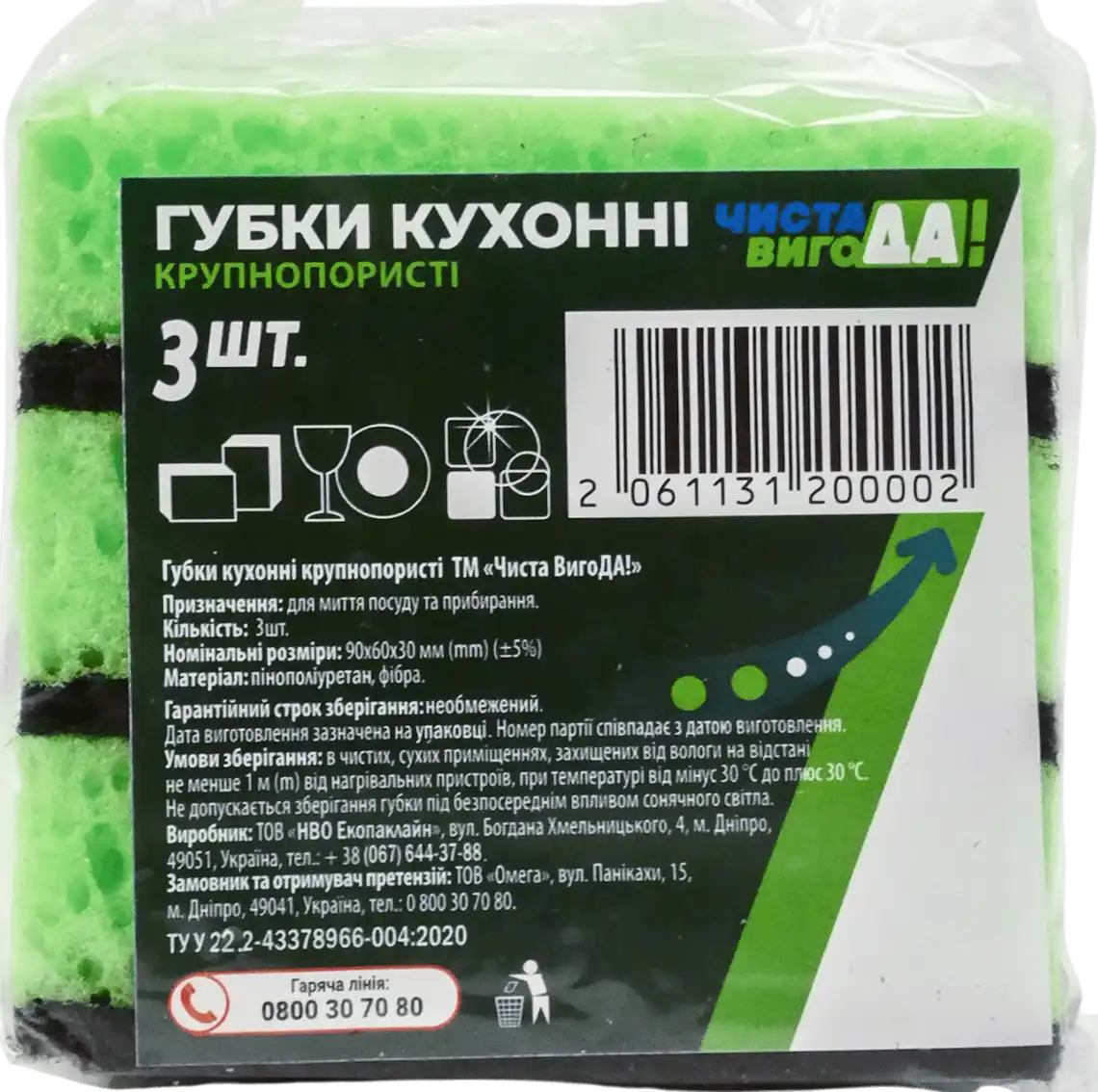 Губки ЧИСТА ВИГОДА! кухонні крупнопористі 3 шт