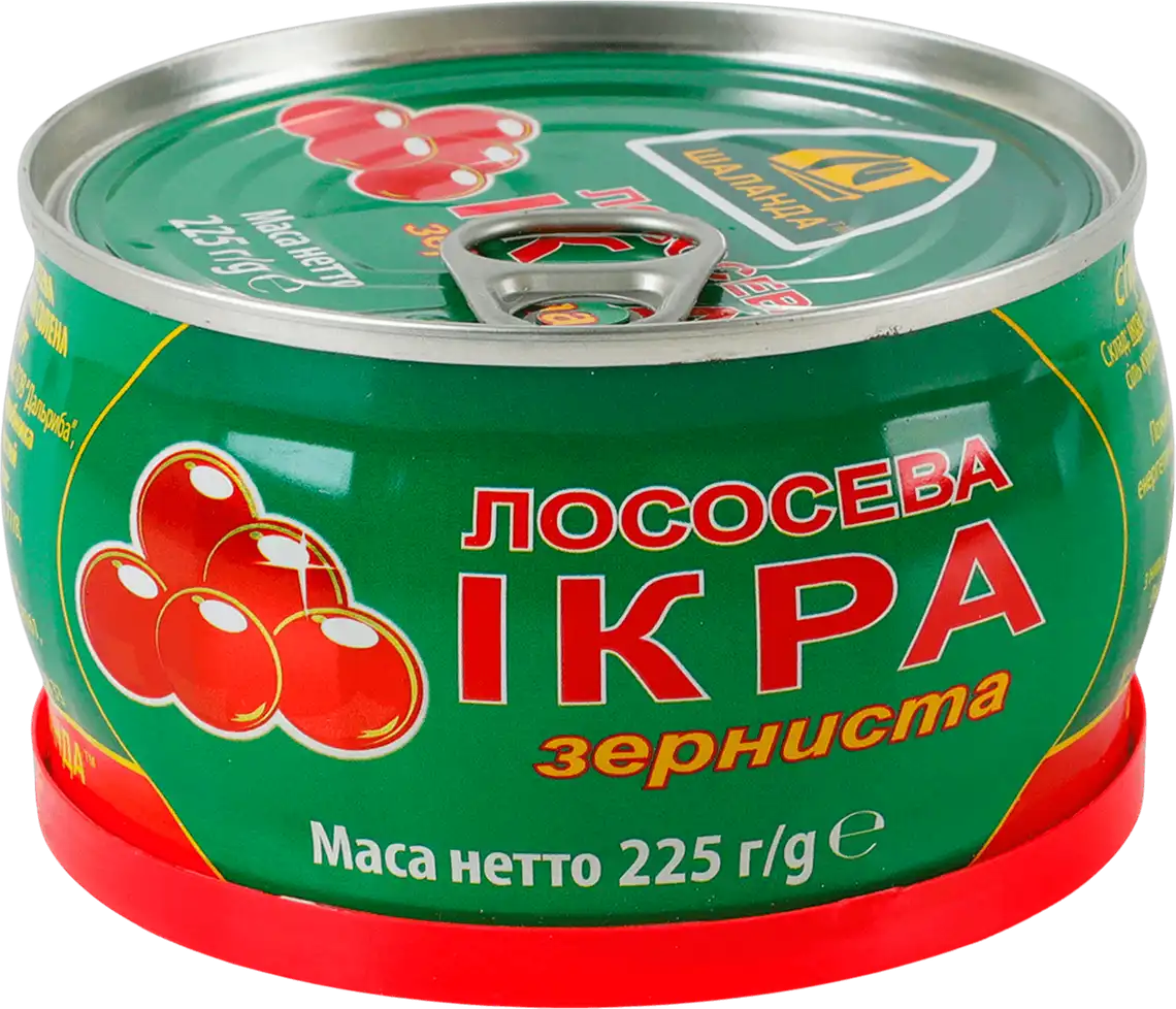 Ікра Шаланда лососева зерниста 225 г — це вишуканий делікатес із насиченим смаком та яскравим ароматом моря. Великі зерна мають ніжну текстуру і приємний післясмак, що робить продукт ідеальним доповненням до святкового чи повсякденного столу. Вона чудово смакує з тостами, білим хлібом, млинцями або як складова вишуканих закусок і салатів. Завдяки зручній банці ікра зберігає свою свіжість та апетитний вигляд. Це універсальний вибір для тих, хто прагне додати у свій раціон нотку розкоші та насолодитися справжнім смаком якісного морського продукту.