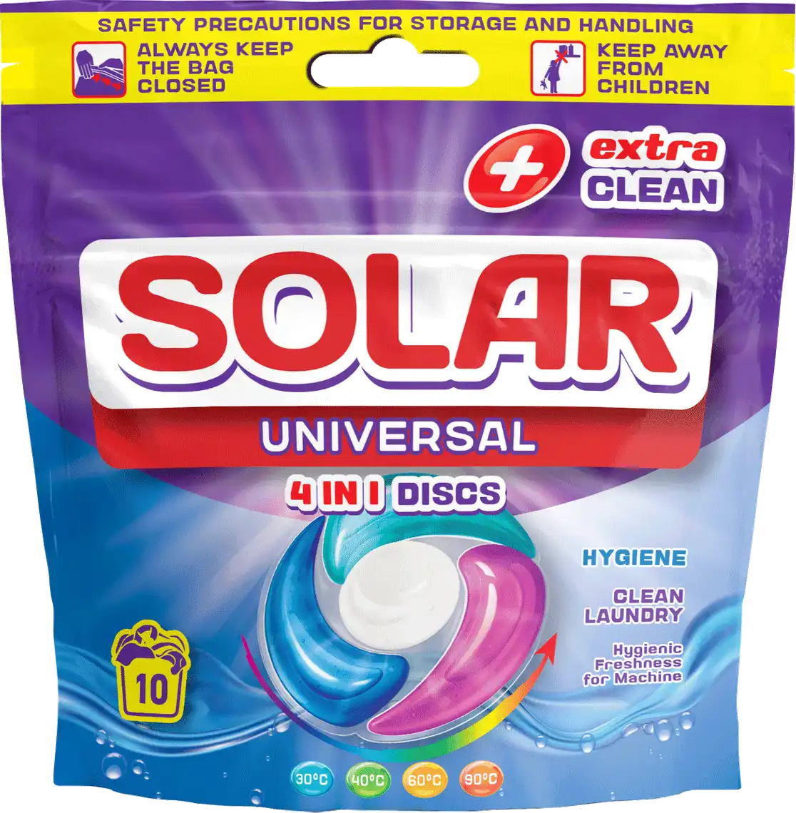 Капсули для прання Solar Universal - це ефективний засіб для прання білих і кольорових тканин, який підходить як для автоматичних пральних машин, так і для ручного прання. Капсули забезпечують високий рівень очищення, легко розчиняються у воді навіть холодній, не залишаючи слідів.