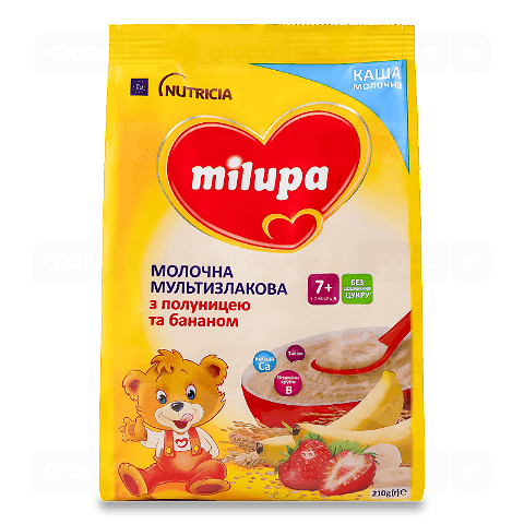 Каша мультизлакова Milupa молочна з полуницею та бананом