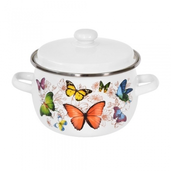 Каструля емальована сферична, з скляною кришкою 2,5л