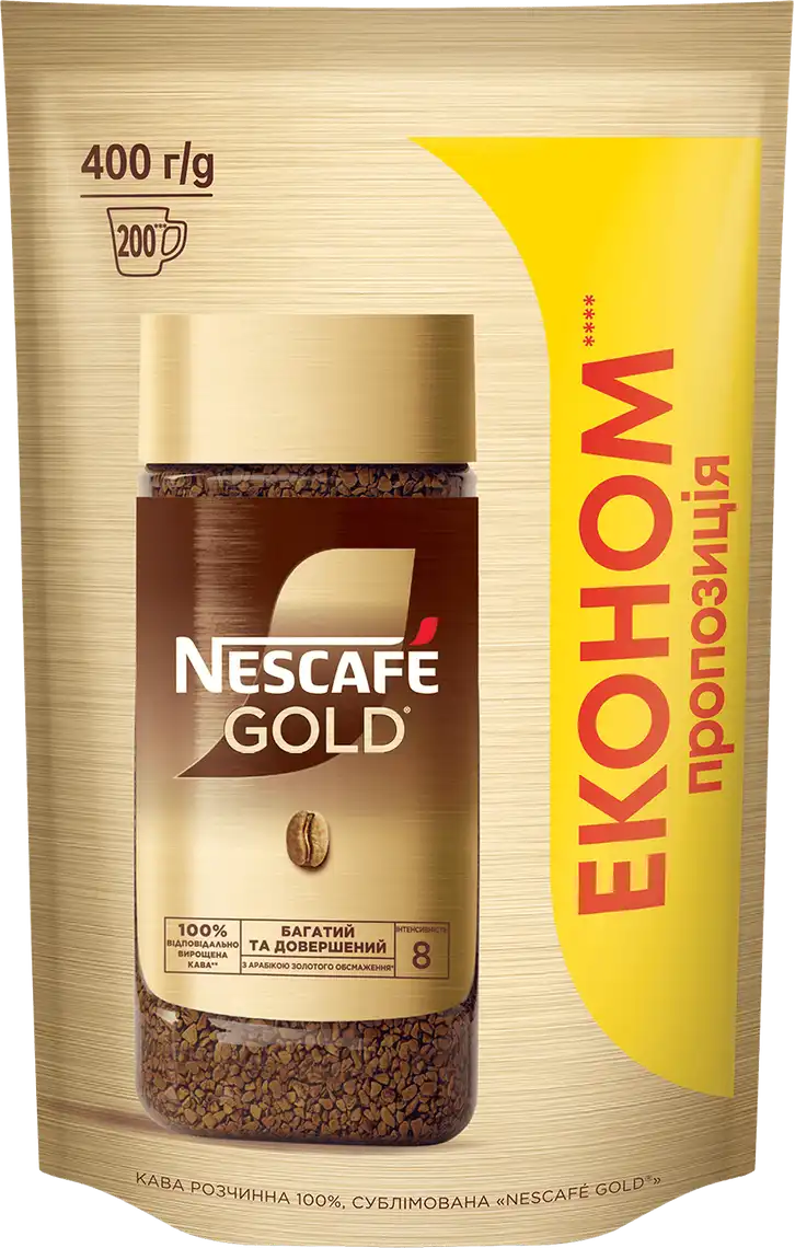 Насолодись NESCAFE Gold® , кавою з довершеним смаком та багатим ароматом. Наші експерти з обсмажування вдосконалюють свою майстерність з 1938 року. Вони використовують особливу комбінацію температури та часу обсмажування, що надає відбірним кавовим зернам характерного золотистого відтінку. Саме таке "золоте обсмаження" дає змогу розкрити всю довершеність смаку та сповнює вашу чашку кави неповторним багатим ароматом. Насипте в чашку приблизно півтори чайні ложки кави. Залийте гарячою водою, але не окропом. Додайте цукор за смаком. Насолоджуйтесь кавою з довершеним смаком.