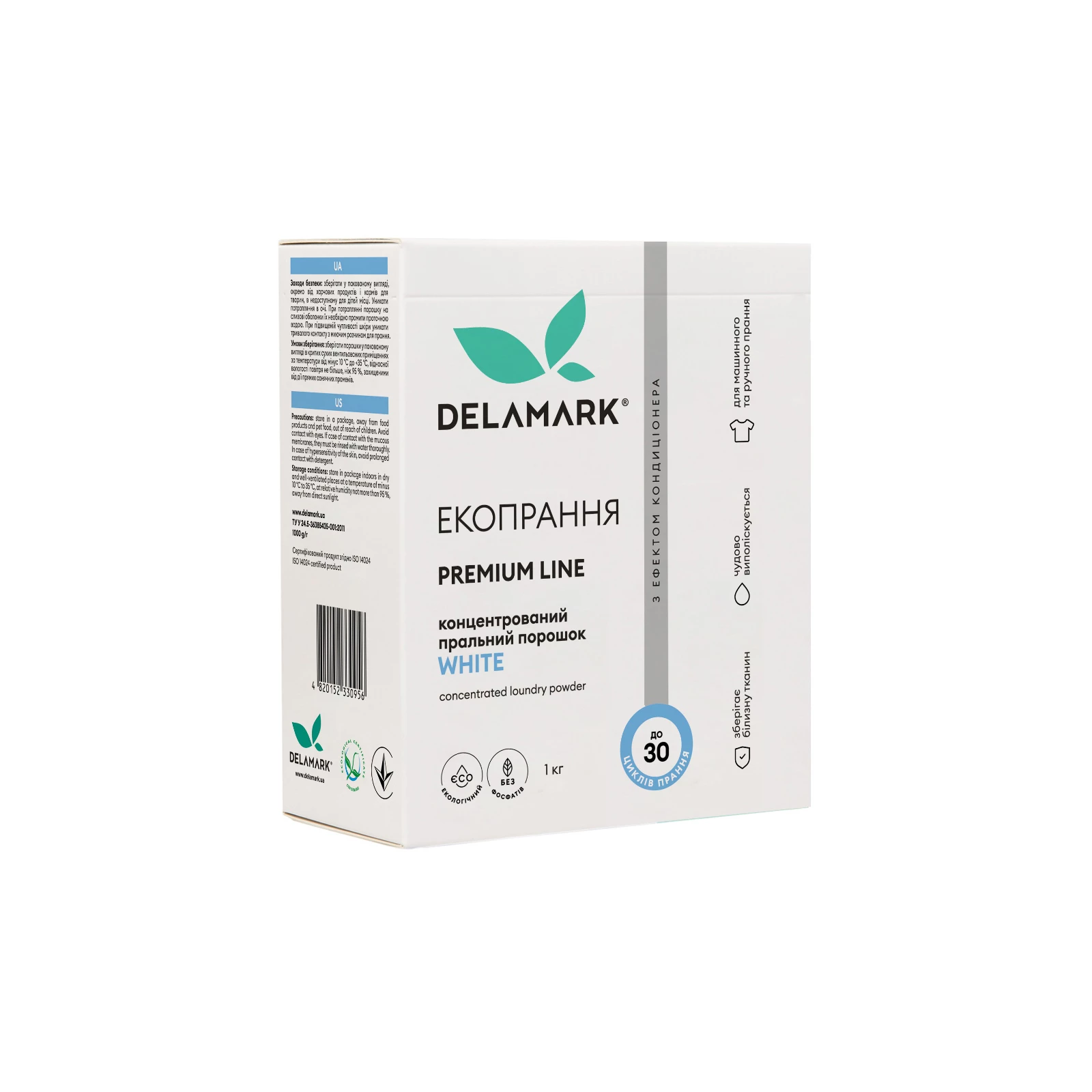 Концентрований безфосфатний пральний порошок DeLaMark Premium Line White з ефектом кондиціонера 1 кг