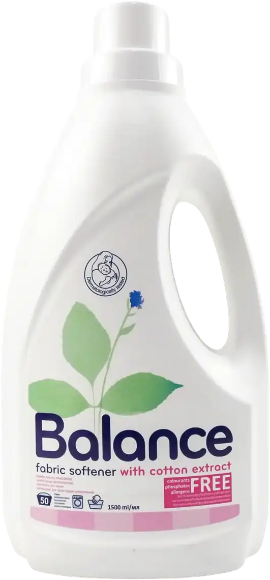Кондиціонер для білизни Balance робить тканини м'якішими, захищає від електризації та прискорює висихання. До складу входить екстракт бавовни, який надає заспокійливий вплив на шкіру. Рекомендовано дерматологами для полоскання дитячого одягу, а також одягу людей з чутливою шкірою та шкірою, схильною до алергії. Продукт легко біологічно розкладається при контакті з навколишнім середовищем.