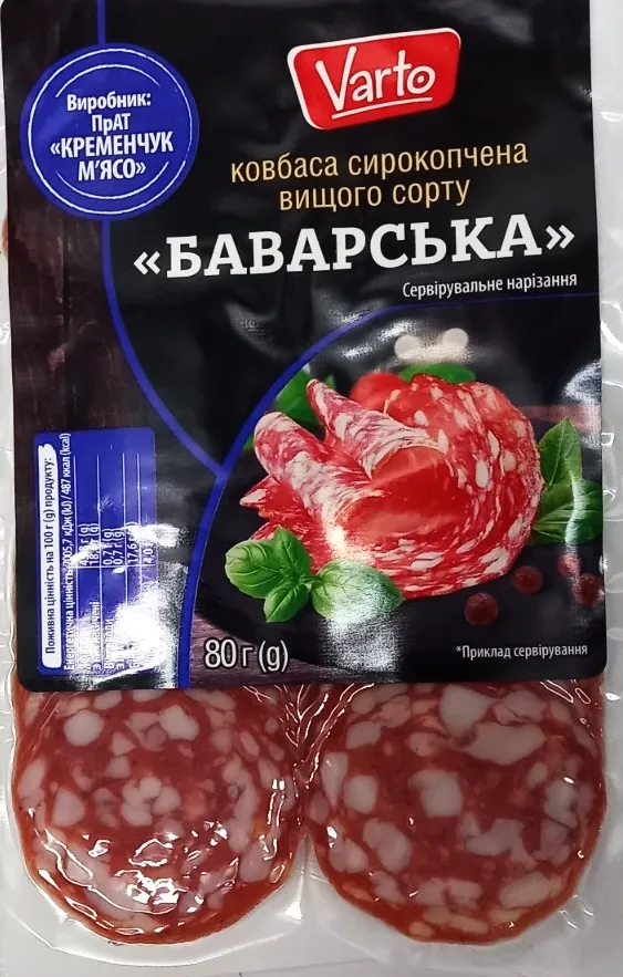 Ковбаса Varto Баварська сирокопчена вищий гатунок нарізка 80 г
