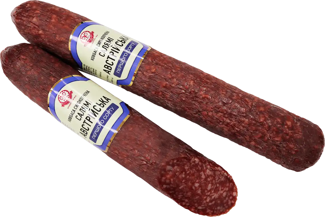 Ковбаса Фарро Салямі Австрійська сирокопчена першого гатунку — це високоякісний м’ясний делікатес, виготовлений із добірної свинини з додаванням натуральних спецій. Завдяки традиційній австрійській рецептурі та сирокопченому способу приготування, ковбаса має виразний аромат і насичений смак із легкими пікантними нотками. Цей продукт ідеально підходить для приготування святкових закусок, бутербродів або як окремий інгредієнт для антипасті. Ковбаса Фарро Салямі доповнить смакову палітру сирних тарілок та гармонійно поєднається з вином чи свіжими овочами.
