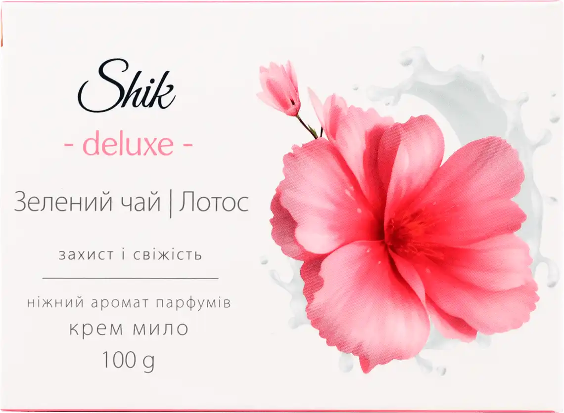 Крем-мило Shik "Зелений чай та лотос" — це ніжне туалетне мило преміум-класу, створене для щоденного догляду за шкірою. Завдяки вмісту натуральних екстрактів зеленого чаю та лотоса, мило забезпечує делікатне очищення, зволоження і тонізацію шкіри, залишаючи приємний свіжий аромат.