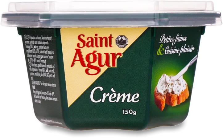 Крем-сир Saint Agur – це ніжний французький блакитний сир із коров'ячого молока. Пряний на смак, із виразним сильним запахом. Текстура гладка, кремова, цей сир добре мазати на крутоні або тост. Гострі та вершкові відтінки добре збалансовані та не заглушають один одного. Дозріває цей сир близько 60 днів.