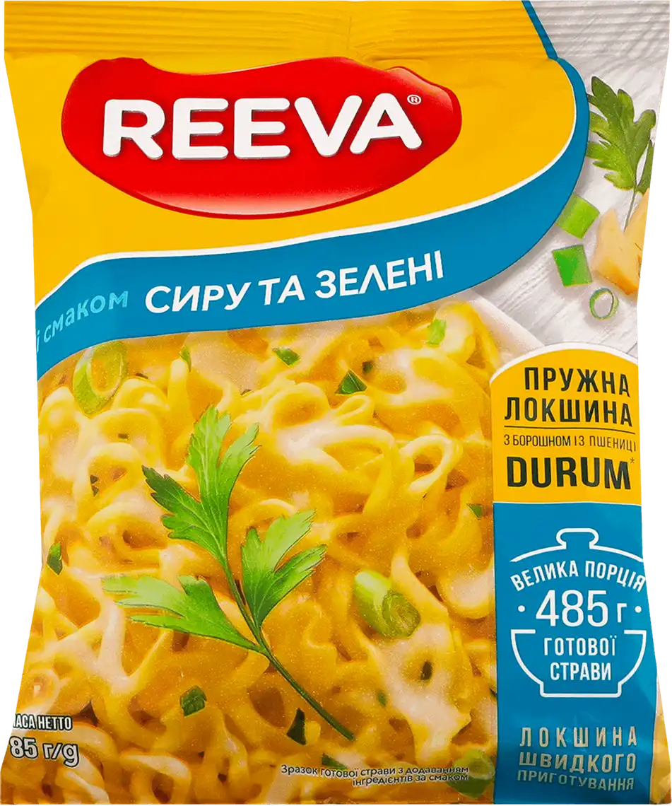 Локшина швидкого приготування Reeva поєднала у собі високі технології та справжній смак домашньої страви. Сушені натуральні овочі та зелень, ніжна локшина з пшеничного борошна вищого ґатунку, ароматний бульйон гарантують справжній домашній смак!