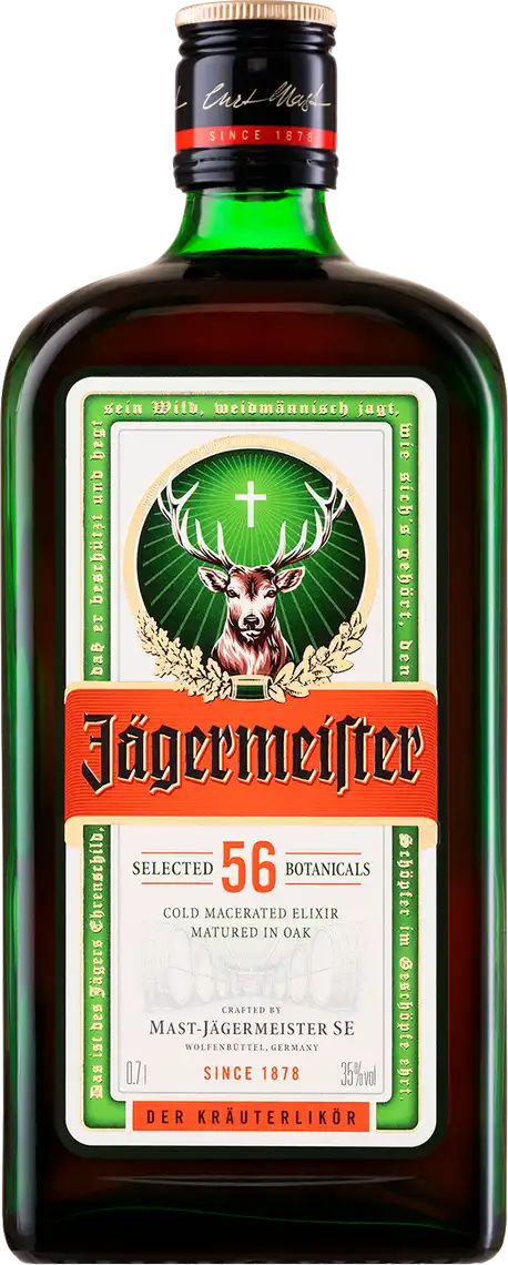 Лікер Jägermeister 35% Оригінальна німецька рецептура лікеру на травах зробила Jägermeister одним із найвідоміших алкогольних напоїв. Він уособлює собою нічне життя столиці, той самий дух свободи. Процес настоювання протягом 1 року дозволяє смаковим відтінкам розкритися максимально багатогранно. Дубові бочки першого наповнення не містять елементи попередніх напоїв, за рахунок чого органолептика автентична та чиста. Смак як символ Берліна З першого ковтка напій показує всі свої сторони: ви відчуєте коріандр, гвоздику та корицю з приємним цитрусовим підтоном. Аромат виражений, пряний та терпкий, насичений трав'яними акцентами. При охолодженні змінює смак, роблячи органолептику м'якшою. Ідеальний для коктейлів На базі лікеру ви зможете приготувати багато нескладних, але дуже смачних коктейлів. Всім відомий «Ягер Бомб» одержують змішуванням лікеру з напоєм Red Bull. Якщо з'єднати Jägermeister із гренадином, апельсиновим соком та льодом – отримаємо «Єгермонстр». Поєднання лікеру, спрайту та огірка з льодом отримало назву «Кукумбер».