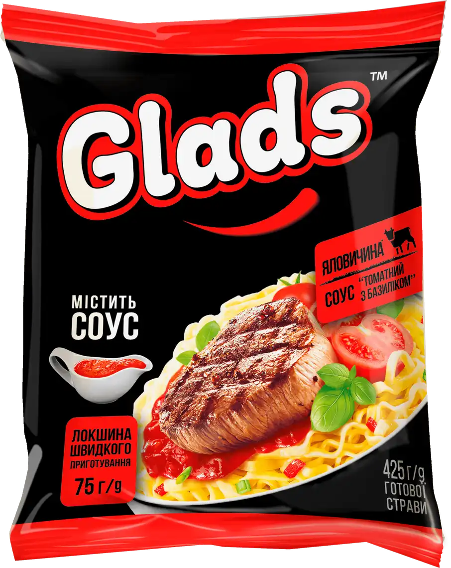 Локшина швидкого приготування Glads Яловичина з соусом Томат з базиліком 75 г