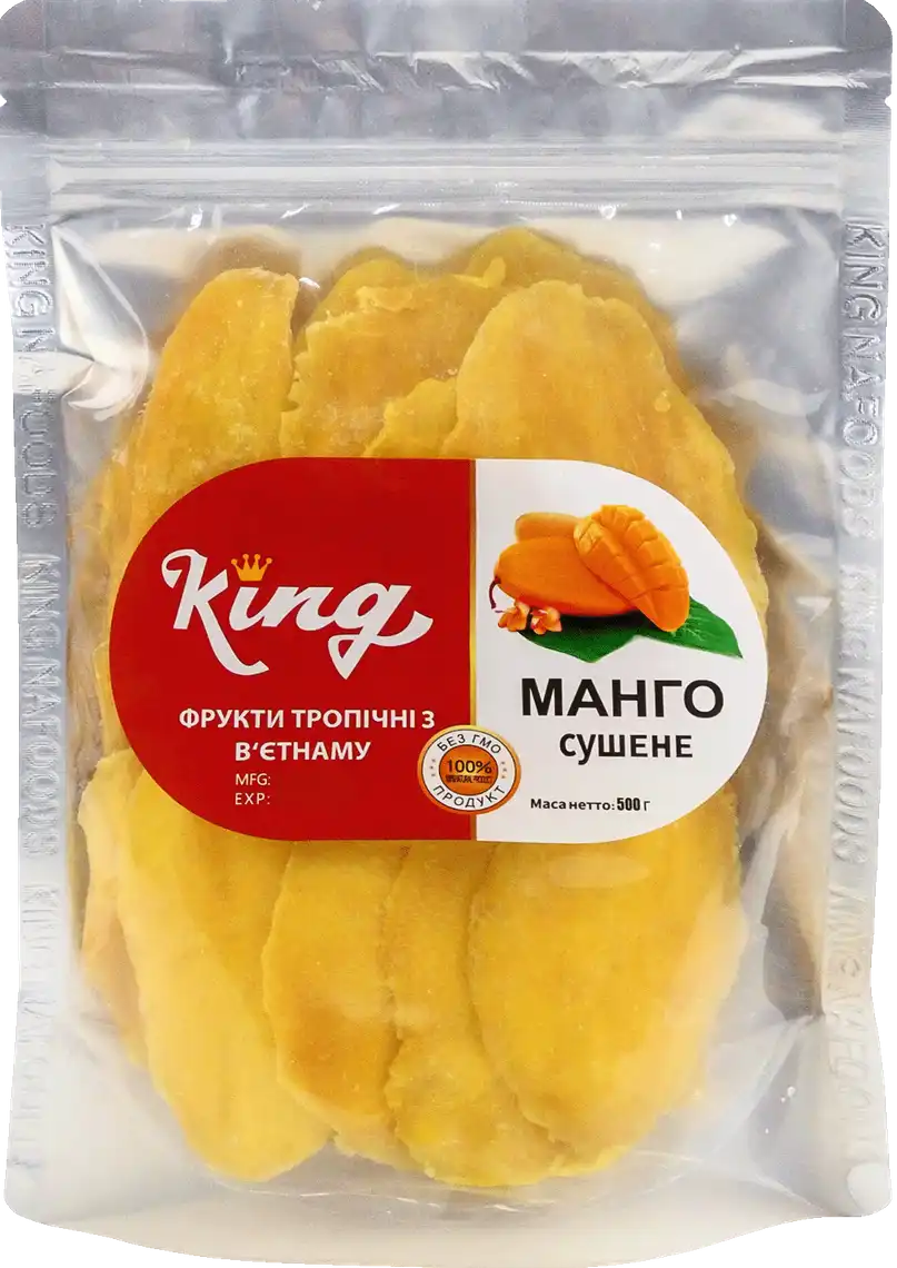 Сушений манго - це фрукт манго, який просушують, щоб зберегти його тривалий термін зберігання і концентрувати смак і аромат. Сушене манго має солодкий, фруктовий смак з легкими кислинками. Воно має насичений манго-смак, який доповнюється легкими нотками карамелі і меду.Сушене манго багате на вітаміни, мінерали і антиоксиданти. Воно містить вітамін С, вітамін А, вітаміни групи В, кальцій, залізо, магній та інші корисні речовини. Вітамін С сприяє підтримці імунної системи, антиоксиданти допомагають боротися зі стресом від вільних радикалів, а мінерали підтримують здоров'я кісток і серця.