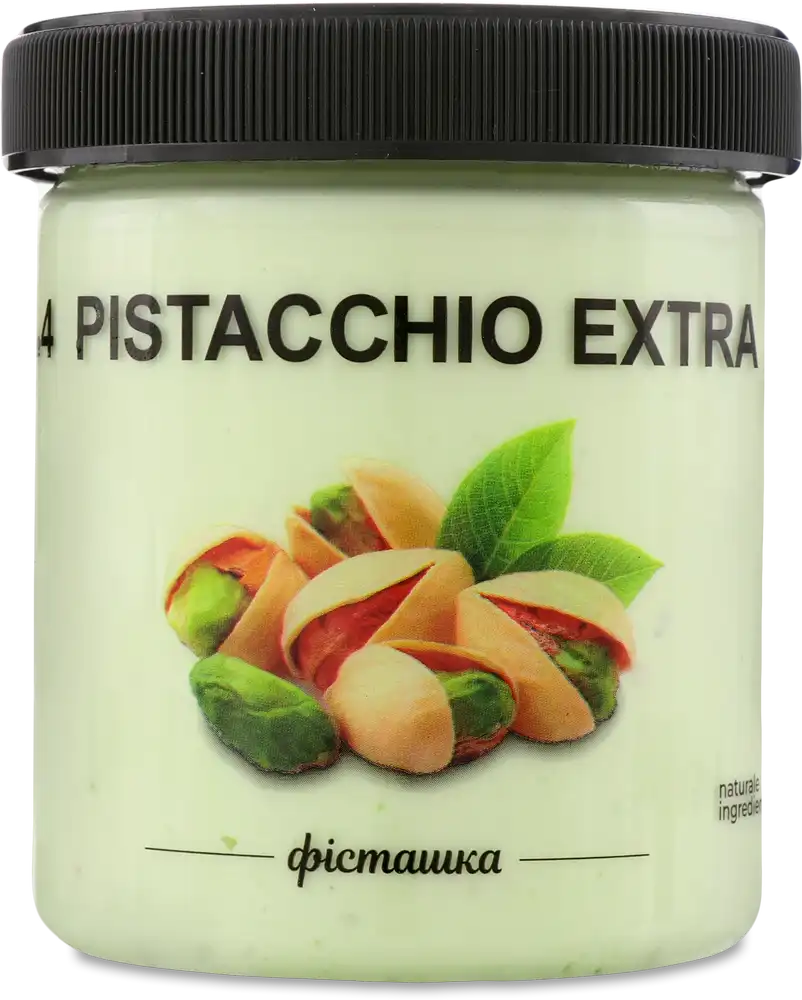 Кожна порція фісташкового джелато обіцяє хрустке задоволення. Магія зеленого горіха в тому, що він вміє привернути до себе увагу і залишитися в пам'яті, як найцікавіше з пригод, яке норовить перерости в звичку. А коли цей горішок кращого сицилійського сорту і багатство його смаку таке, що воно ледь тримається в баночці ... Цей смак з тих, до яких повертаються.