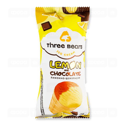 Морозиво Три ведмеді лимонно-шоколадне у вафельному стакані