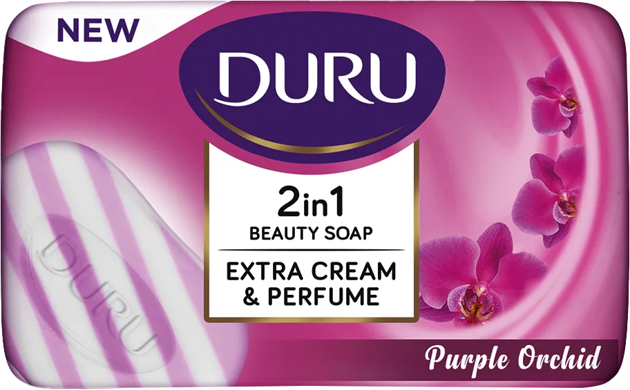 Тверде косметичне мило Duru 2в1 Фіолетова орхідея забезпечує ніжне очищення від різних забруднень без пересушування шкіри, а інтенсивний квітковий аромат надає відчуття свіжості та розкоші, перетворюючи процес гігієни на справжню насолоду