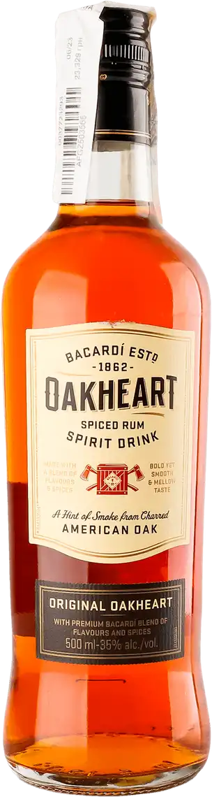 Bacardi Oakheart Original - це золотий ромовий напій, створений для тих, хто цінує глибокий смак і насичений аромат. Цей ром виготовлений у кубинських традиціях, а потім витриманий у дубових діжках протягом 12 місяців, що надає йому виразного характеру. Особливість цього напою - у поєднанні рому з натуральними екстрактами ванілі та меду, що робить його смак оксамитовим та приємним. Він ідеально підходить для вживання в чистому вигляді, з льодом або як основа для коктейлів. Ромовий напій Oakheart Original має витончений аромат з легкими димними нотами східних прянощів, відтінками ванілі, мускатного горіха та кориці. У смаку відчуваються приємні тони сухофруктів - кураги, чорносливу, родзинок та вишні, а також ноти кленового сиропу та меду. Цей ром є універсальним напоєм для будь-якої вечірки або затишного вечора. Виготовлений в Італії, він є чудовим прикладом майстерності та якості. Переваги Оригінальний смак з екстрактами ванілі та меду; Витриманий у дубових діжках протягом 12 місяців; Багатий, зігріваючий аромат з нотами сухофруктів та прянощів; Ідеально підходить для коктейлів; Міцність 35% об. Зберігання Зберігати при температурі від +5 до +25 °C у темному місці, подалі від прямих сонячних променів. Оптимальна температура для подачі рому - 4 °C. Після відкриття пляшки, щоб зберегти смакові властивості, рекомендується щільно закривати її. Чому варто купити онлайн Купити ромовий напій Oakheart Original онлайн на VARUS.ua - це зручно, швидко та надійно. Ви можете легко замовити улюблений напій, ознайомитися з ціною та актуальними акціями. Доступна доставка додому або самовивіз із найближчого супермаркету. На сайті ви знайдете широкий вибір алкогольних напоїв, що дозволить легко підібрати варіант для будь-якої події. FAQ -Скільки калорій міститься в цьому ромі? У 100 г продукту міститься 220 ккал. -Чи можна пити цей ром в чистому вигляді? Так, завдяки м'якому смаку, його можна пити в чистому вигляді з льодом. -Чим відрізняється Oakheart від класичного Bacardi? Oakheart має більш насичений, пряний та солодкий смак завдяки додаванню спецій та витримці в дубових діжках.