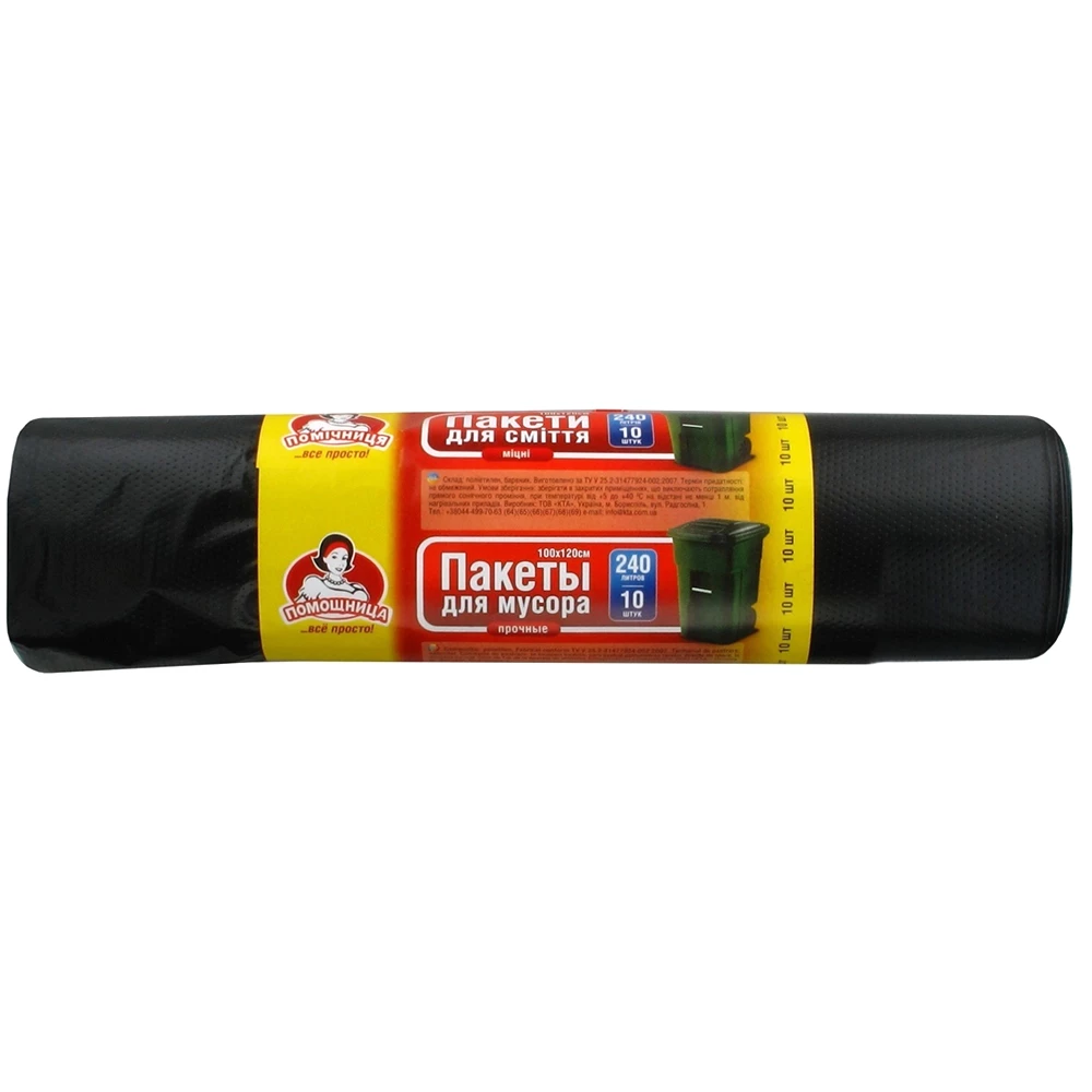Пакети для сміття ТМ Помічниця. Об'єм: 240 л. Кількість: 10 шт. Розмір: 100х120 см. Колір: чорний.Пакети для сміття ТМ Помічниця. Об'єм: 240 л. Кількість: 10 шт. Розмір: 100х120 см. Колір: чорний.