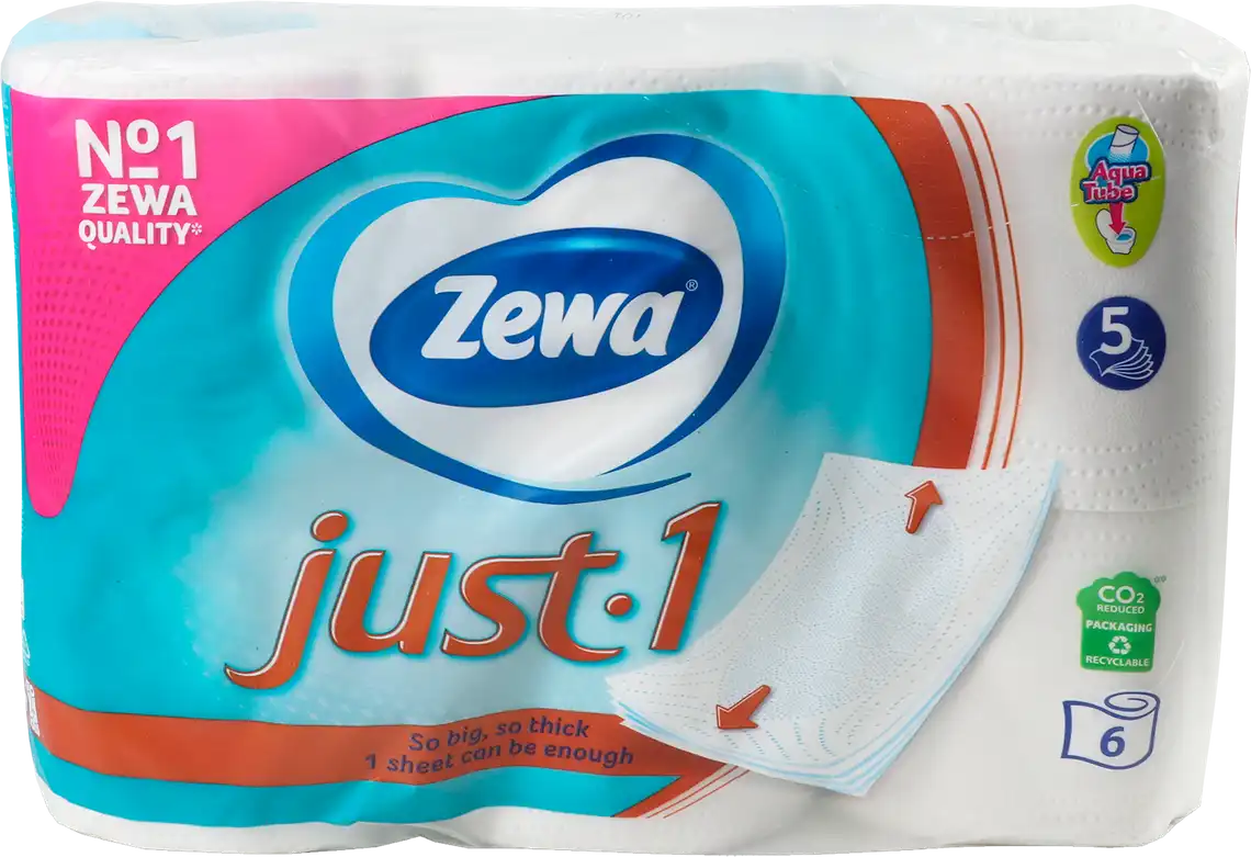 П'ятишарова туалетний папір Zewa Just 1 дає відчуття бездоганної чистоти. Кожен листочок ще товщі і більше на 20%, тому вбирає набагато краще. Особлива м'яка зона в центрі залишає відчуття комфорту. Вона має неймовірну поглинання, завдяки чому використання паперу буде менше. Втулка біоразкладається і швидко розчиняється в каналізаційних трубах, так як виготовлена з тих же волокон, що і туалетний папір. Для виробництва використовується тільки сертифікована целюлоза отримана згідно з принципами дбайливого ставлення до природи, а упаковку продукту можна здати на переробку (ISO 18604). Дерматологически протестовано (сертифікат виданий дерматологічних інститутом Німеччини DermaTronnier GmbH & Co. KG Institut für experimentelle Dermatologie Universität Witten - Herdecke). • Біла 5-ти шарова туалетний папір без аромату. • 1 листочка досить *. • Листочок на 20% більше ** і на 50% ** товщі. • Біорозкладана втулка AquaTube легко змивається в унітаз. • Зі знаком FSC (FSC-C003255). • Упаковка перероблялася. • Склад: 100% целюлоза.