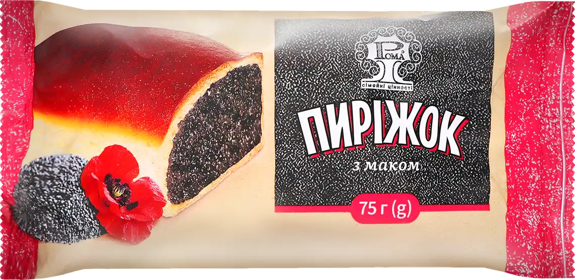 Пиріжок Рома з маком - це делікатесний випічний виріб, який готують із м'якого тіста, яке легко тане в роті, а всередині знаходиться начинка з маку. Пиріжки з маком є популярним видом випічки в багатьох країнах. Вони часто подаються як десерт або закуска до чаю чи кави.Пиріжки з маком чудово поєднуються з гарячим напоєм, як чай або кава, і можуть бути сервіровані як солодкі ласощі протягом дня.Пиріжки Рома з маком - це смачне частування, яке може припасти до смаку любителям солодощів і тих, хто цінує традиційну випічку.