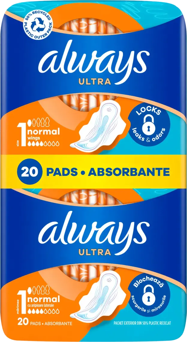 Гігієнічні прокладки Always Ultra Normal (Розмір 2) з системою InstantDry миттєво вбирають вологу і утримують її всередині, забезпечуючи до 100% захисту і впевненості. Гігієнічні прокладки Always Ultra оснащені технологією нейтралізації запаху, яка блокує неприємний запах, а не просто маскує його. Гігієнічні прокладки Always Ultra товщиною всього 3 мм дарують комфорт і забезпечують неперевершений захист під час менструації. Залишайтеся під надійним захистом, як би активно ви не рухалися.
