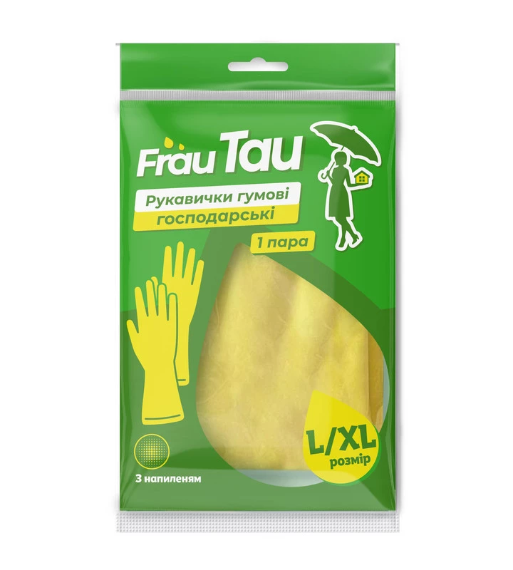 Латексні господарські рукавички Frau Tau використовуються для захисту рук від хімічної та механічної дії при господарських роботах низької інтенсивності. Рукавички мають рівномірне бавовняне напилення та рівномірну щільність латексу (без ущільнень), а також спеціальну рифлену поверхню запобігає вислизанню мокрих предметів. Використання: для миття посуду, прання білизни, догляду за тваринами, чищення овочів.Латексні господарські рукавички Frau Tau використовуються для захисту рук від хімічної та механічної дії при господарських роботах низької інтенсивності. Рукавички мають рівномірне бавовняне напилення та рівномірну щільність латексу (без ущільнень), а також спеціальну рифлену поверхню запобігає вислизанню мокрих предметів. Використання: для миття посуду, прання білизни, догляду за тваринами, чищення овочів.
