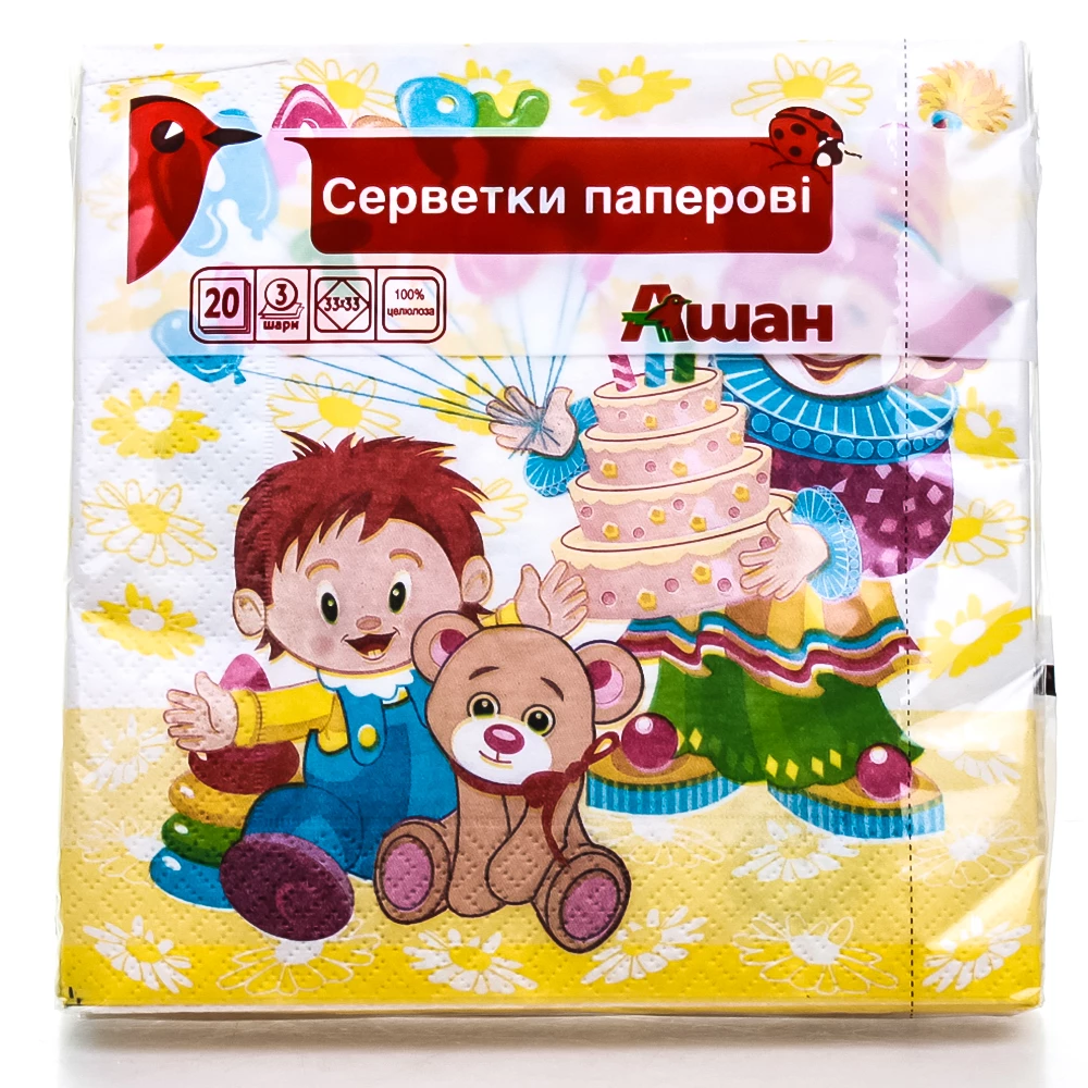 Серветки целюлозні Auchan дитячі, 33х33 см, 20 шт