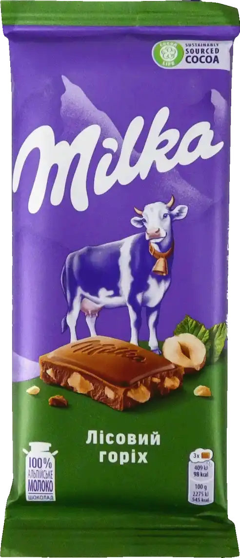 Шоколад Milka молочний з подрібненим лісовим горіхом - це молочний шоколад, в якому додано дрібно подрібнені горіхи. Основний інгредієнт цього шоколаду - молочний шоколад. Він має ніжний і кремовий смак, завдяки використанню як какао, так і молока.Шоколад збагачений дрібно подрібненими лісовими горіхами. Ці горіхи надають шоколаду текстуру й аромат горіхів, а також додають характерного горіхового смаку.Шоколад Milka з подрібненими лісовими горіхами часто вживається як цукерка. Він служить смачним частуванням і ідеально підходить для задоволення солодкого бажання.Цей шоколад також може використовуватися як інгредієнт для приготування десертів, таких як пироги, брауні або печиво.
