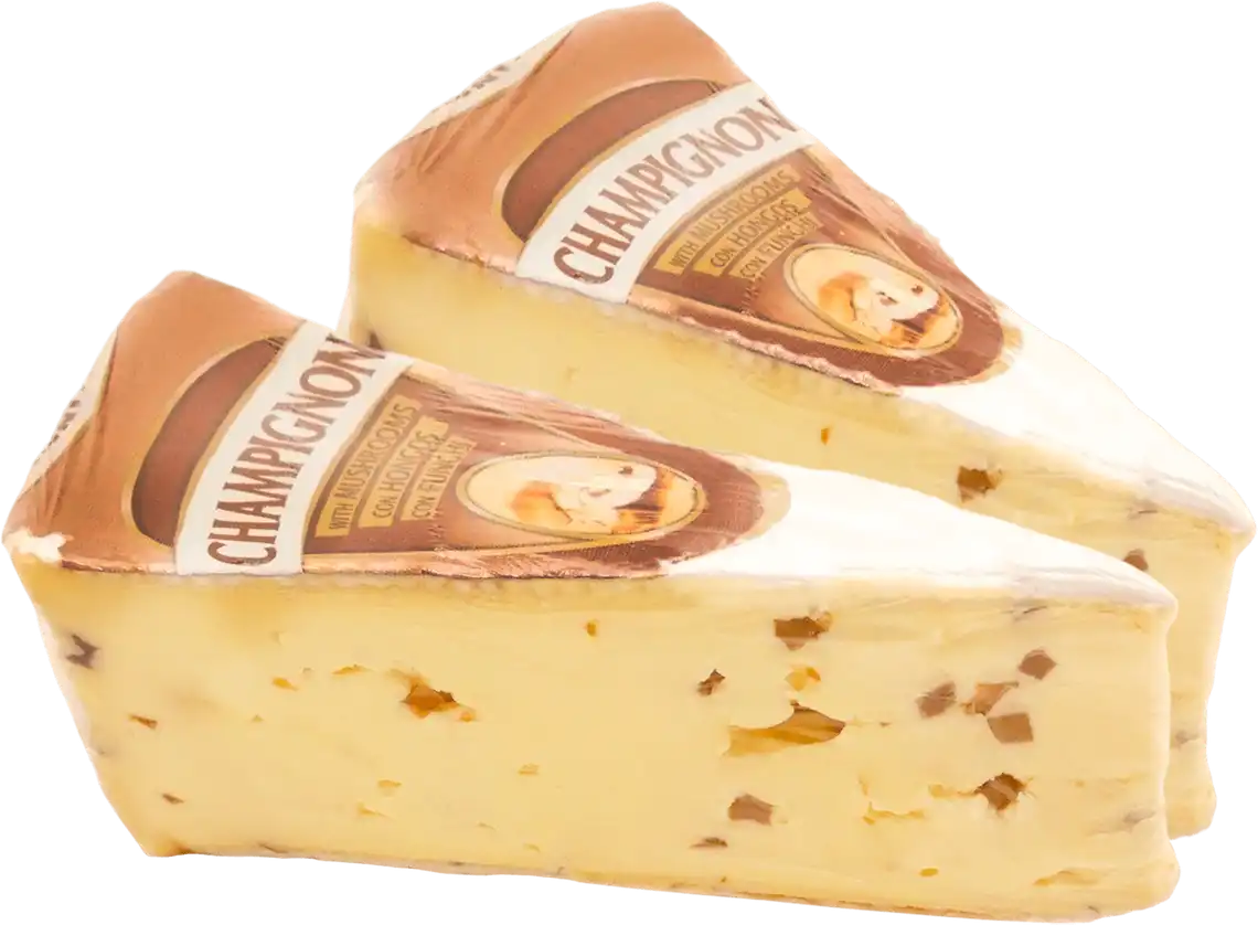 Сир Kaserei Champignon Mushrooms 70 % — делікатесний бочкоподібний різновид тріпл‑кремового брі, виготовлений в Баварії (Німеччина), що вражає інтенсивним смаком та незвичним акцентом — грибами шампіньйонами, рівномірно розсіяними по ніжній кремовій основі. М’яка текстура — оксамитово-кремова, із щільністю невеликої ніжності, яка дозволяє легко нарізати або м’яко намазувати сир на крекери чи хліб. Ядро складається з пастеризованого коров’ячого молока, вершків і приблизно 8 % дрібно рубаних грибів, що додають пікантні земляні нотки й глибинний грибний аромат. Смак виважений: вершкова і м’яко солонувата основа плавно переходить у помірно грибний післясмак із делікатною пікантністю. Жирність у сухій речовині — приблизно 70%, що забезпечує багату структуру і насичене звучання смаку без зайвої тяжкості чи гостроти. Цей сир чудово пасує до свіжого хліба, горіхів, фруктів чи легких білих вин. Його також можна запікати — у цьому випадку текстура стане ще ніжнішою, а грибний аромат — ще яскравішим.