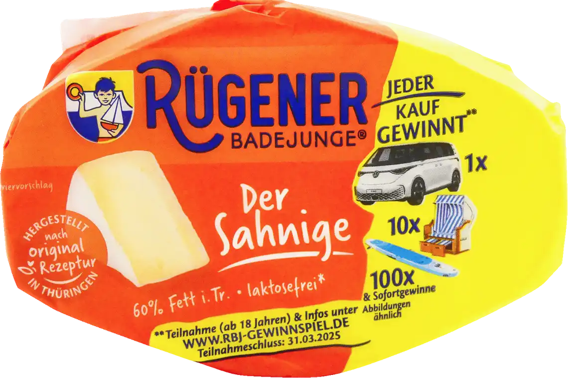 Сир Ruegener Camembert вершковий безлактозний 60% — це ніжний і вишуканий м'який сир, виготовлений спеціально для людей, які дотримуються безлактозної дієти. Завдяки класичній рецептурі та особливому процесу дозрівання, сир має характерну м’яку текстуру, покриту тонкою білою пліснявою скоринкою, яка додає йому вишуканого аромату та особливого смаку. Сир відрізняється насиченим вершковим смаком із делікатними горіховими нотками та тонким солодкуватим післясмаком. Його м’яка серцевина тане в роті, роблячи цей продукт ідеальним доповненням до сирних тарілок, салатів або як самостійну закуску. Ruegener Camembert чудово поєднується зі свіжими фруктами, горіхами, медом та сухим білим вином. Безлактозний склад робить цей сир доступним для тих, хто має непереносність лактози, при цьому зберігаючи традиційний смак класичного камамбера. Його можна використовувати як інгредієнт для гарячих страв, додавати до випічки або подавати з хрустким багетом для створення витонченого перекусу. Ruegener Camembert вершковий безлактозний 60% — це вибір для тих, хто цінує якість, натуральність та турбується про своє здоров’я, не відмовляючи собі у гастрономічних насолодах.