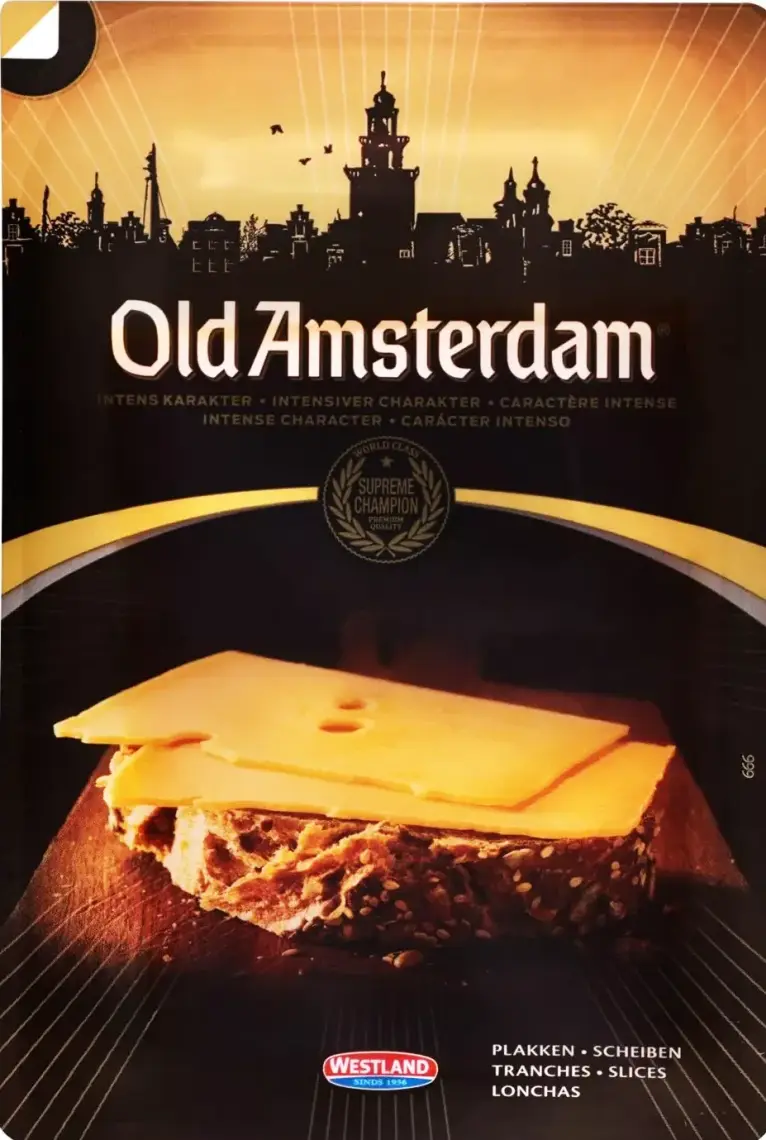 Сир Old Amsterdam (Олд Амстердам, Старий Амстердам) – традиційний екстра твердий (витриманий 18 місяців) сир з Нідерландів, найвідоміший та вишуканий сир з роду Гауда. Це один з найбільш титулованих сирів дуже високої якості, рахуэться візитною карткою Нідерландів. Old Amsterdam готують зі свіжого пастеризованого молока корів. В сиру насичений та багатий солоно-солодкуватий смак, приємний, ніжний та неповторний аромат. Кристалики в структурі Олд Амстердама, свідчать про преміальну якість сиру. Ідеально підходить до закусок, тапас або просто в якості аперитиву. Він неймовірно смачний сам по собі! Його використовують в різних гарячих і холодних стравах. Чудово поєднується з пивом, а також з широкою гамою червоних і білих вин.