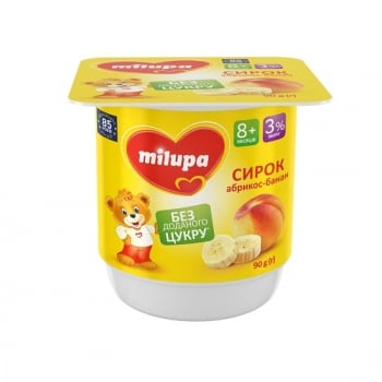 Сирок 90 г Milupa Банан-абрикос без цукру 3% п/стакан