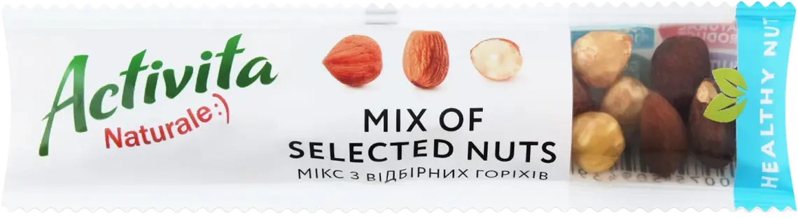 Activita - це твій корисний перекус у вигляді улюблених горіхів в зручній і стильній упаковці. Користь горіхів неоціненна, тому їх обов'язково слід включати в свій денний раціон, адже вони насичують організм поживними елементами, мікроелементами і мінералами в натуральній формі.