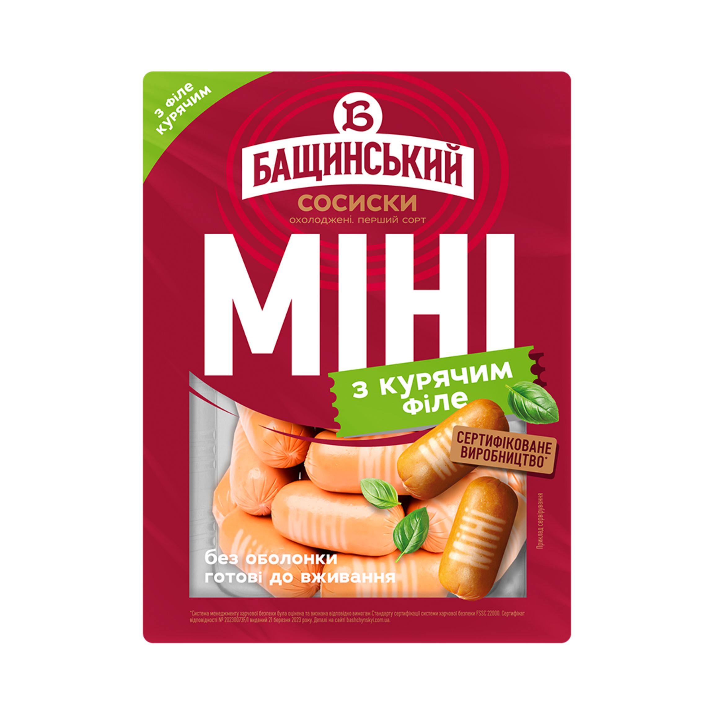 Сосиски «Бащинський» «Міні з курячим філе» варені 1 сорт, без оболонки