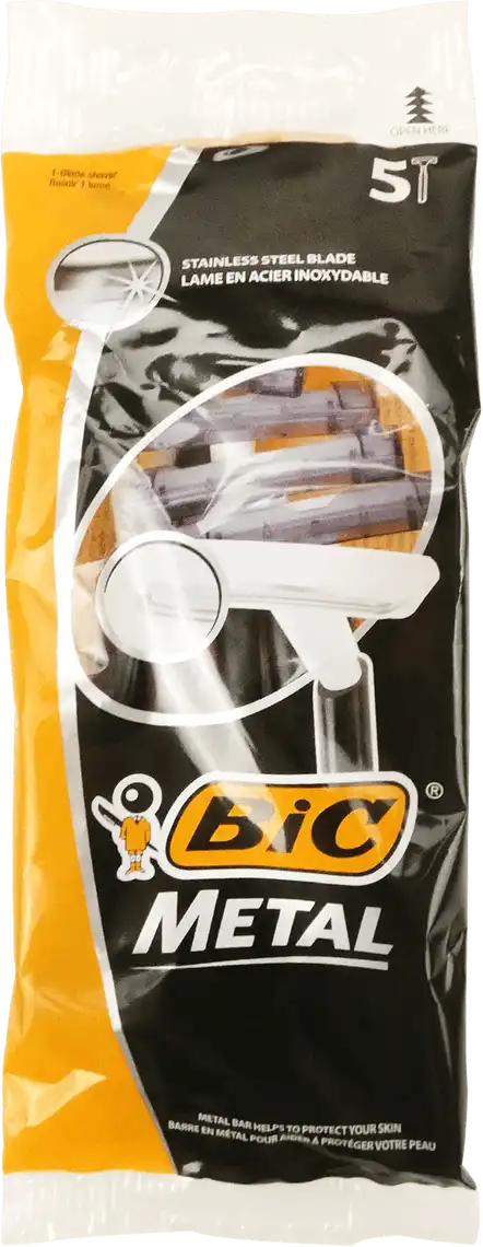 BIC - всесвітньо відомий бренд, виробляє канцелярську продукцію, одноразові бритвені верстати, запальнички та інші дрібниці життя. Виробництво бритв фірмою BIC бере свій початок в 1975 р Одноразові бритви BIC Metal розроблені спеціально для жорсткої щетини. У набір входить 6 станків для гоління з одним лезом. Особливості: • Вузька фіксована головка для ретельного гоління. • Захисна металева смужка. • Лезо з нержавіючої сталі вищої якості.