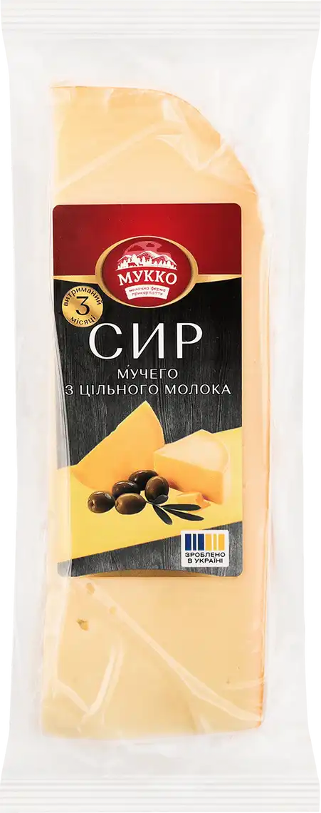 Сир Мукко Мучего 35,5% — це високоякісний напівтвердий сир українського виробництва, виготовлений із добірного коров'ячого молока. Він має щільну, еластичну текстуру з дрібними рівномірними вічками, що робить його зручним для нарізання та використання в різноманітних стравах. Смак сиру відзначається ніжними вершковими нотками з легкою солодкістю, що надає йому особливого шарму та робить привабливим для широкого кола споживачів. Завдяки масовій частці жиру в сухій речовині 35,5%, сир має приємну м'якість та насичений смак. Мукко Мучего ідеально підходить для приготування бутербродів, салатів, запіканок та інших кулінарних шедеврів. Він добре поєднується з фруктами, горіхами та вином, що робить його чудовим вибором для сирної тарілки на святковому столі. Завдяки високій якості та приємному смаку, сир Мукко Мучего 35,5% користується популярністю серед споживачів, які цінують натуральні продукти та різноманітність у своєму раціоні.