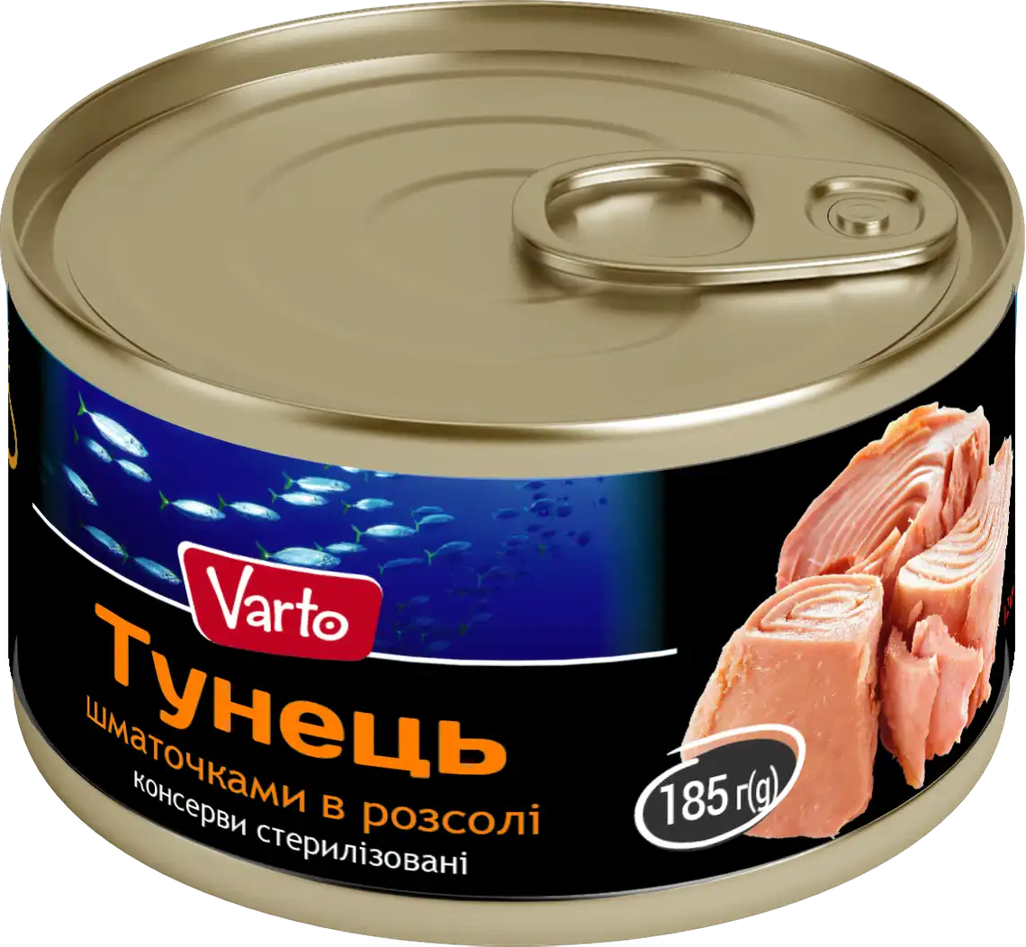 Тунець Varto шматочками в розсолі — це натуральний та поживний консервований продукт, виготовлений із відбірного тунця, нарізаного апетитними шматочками. Вміщений у власному соку без додавання олії, цей тунець зберігає свій природний смак та текстуру, не перевантажуючи страви додатковими жирами. Він є легким, але багатим на білок продуктом, що робить його чудовим вибором для збалансованого раціону. Тунець у власному соку Varto ідеально підходить для приготування салатів, сендвічів, паст або як інгредієнт у різних стравах. Завдяки своєму нейтральному смаку, він чудово поєднується з овочами, соусами або гарнірами, забезпечуючи ситність та легкість.