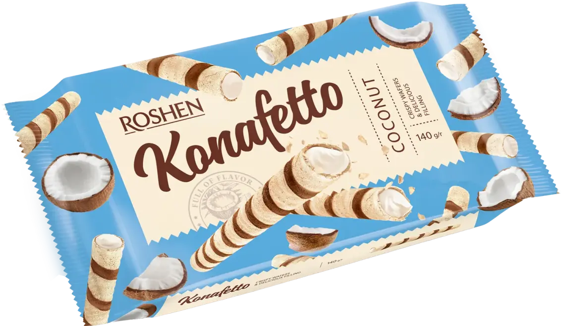 Вафельні трубочки Roshen Konafetto з кокосовою начинкою 140 г