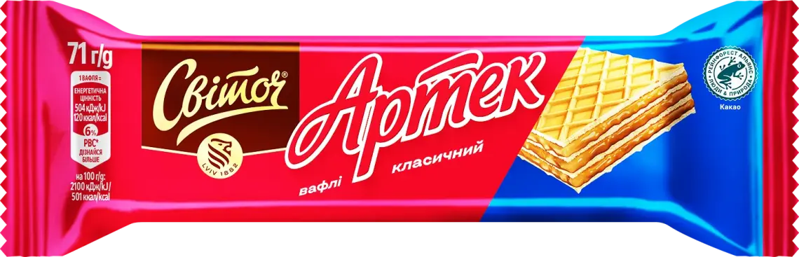 СВІТОЧ® АРТЕК® - це ті самі улюблені, надзвичайно хрусткі вафлі з класичним смаком, якими так солодко похрумтіти в своє задоволення. Виготовлені в Україні з українського борошна, без доданих консервантів та барвників.