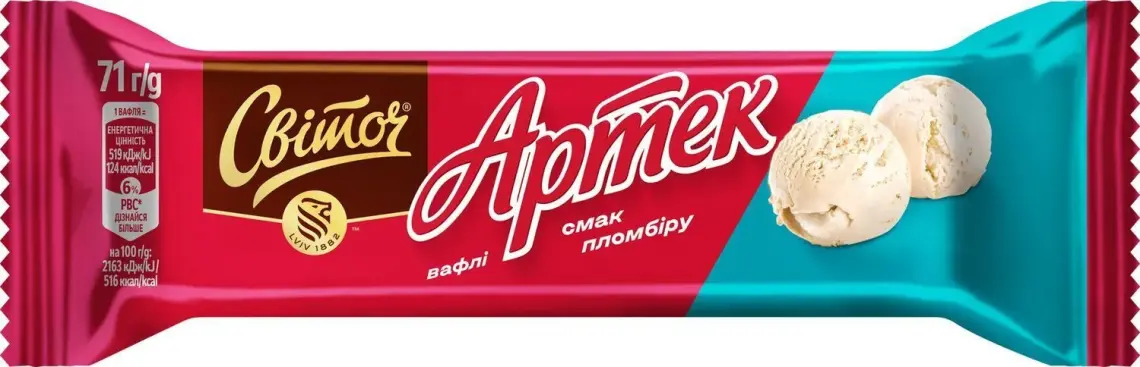 СВІТОЧ® АРТЕК® - це ті самі улюблені, надзвичайно хрусткі вафлі зі смаком пломбіру, якими так солодко похрумтіти в своє задоволення. Виготовлені в Україні з українського борошна, без доданих консервантів та барвників.