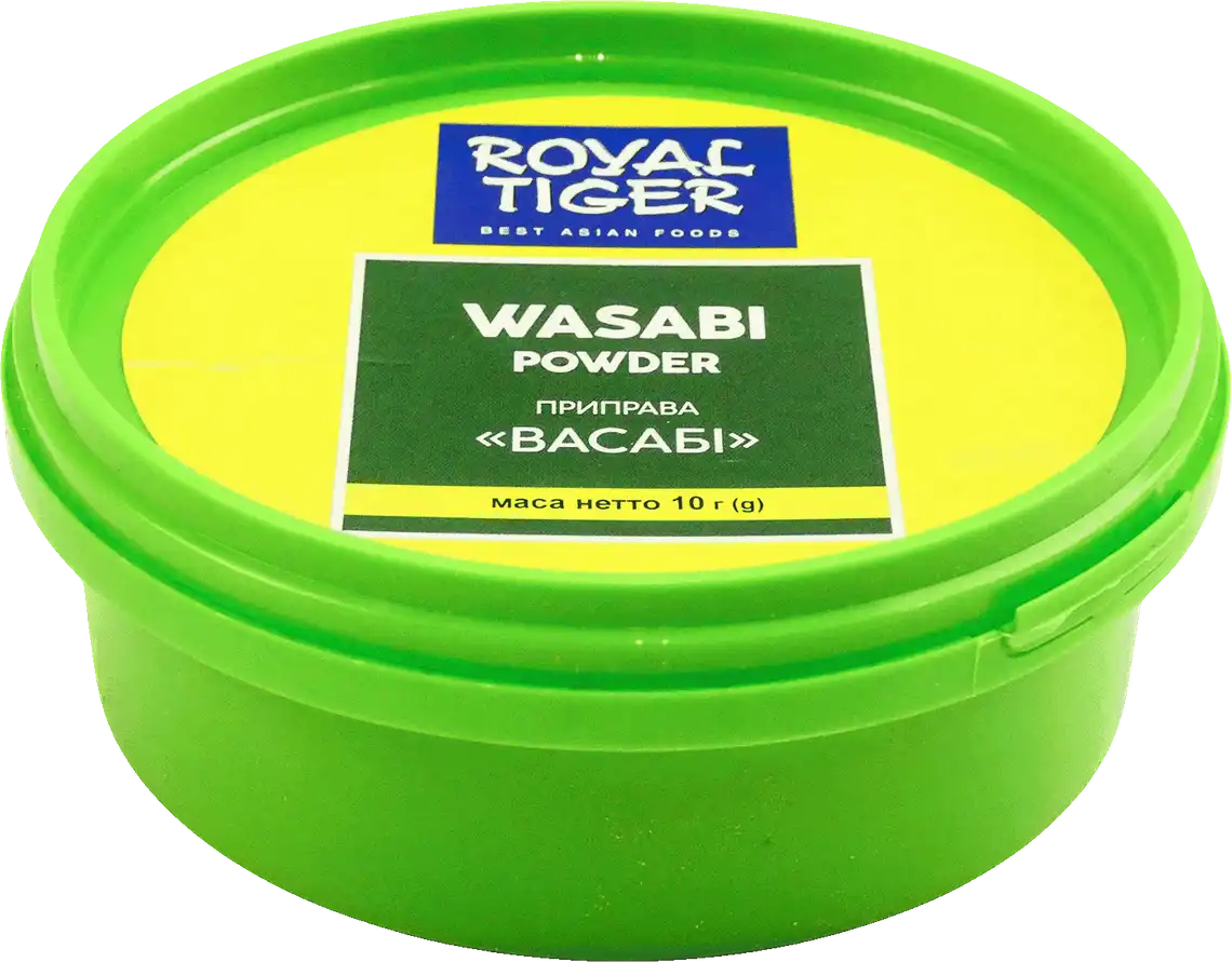 Royal Tiger представляє виключно продукти та інгредієнти для азіатської кухні. Васабі є корінням світло-зеленого кольору, який росте на берегах гірських річок в Японії. Після сушіння корінь перемелюють і розтирають на порошок або пасту. У традиційній японській кухні васабі - обов'язковий інгредієнт до суші і рол, також дозволяє без побоювань вживати сиру рибу, дезінфікуючи її і надаючи страві незвичайну гостроту. Васабі – корисний продукт із високою концентрацією калію, кальцію, вітаміну C та речовин, які посилюють антиокислювальний захист організму, а також допомагають шкірі виставити щит проти вільних радикалів.