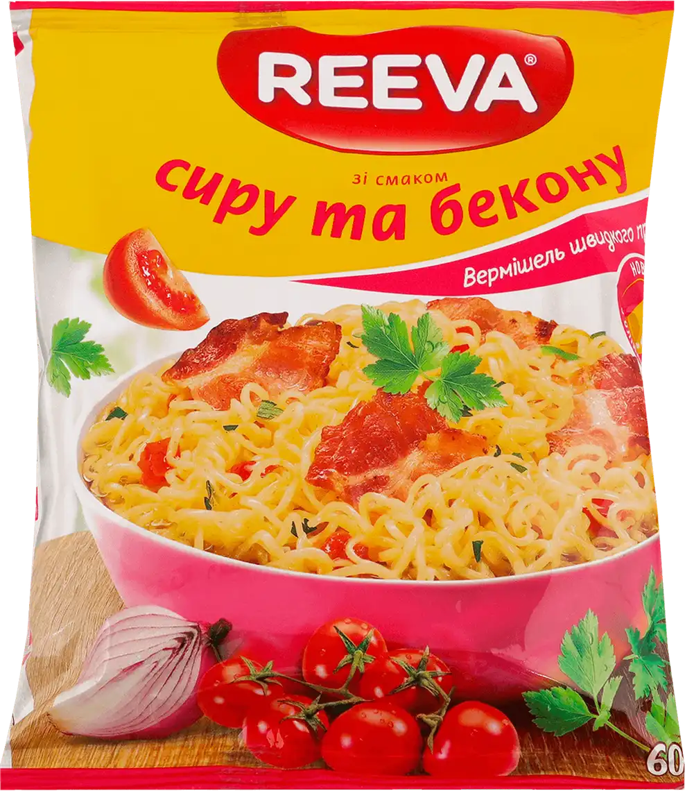 Вермішель Reeva зі смаком сиру та бекону швидкого приготування 60 г